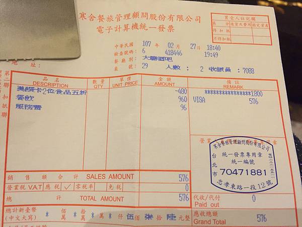 用了美饌卡的兩人折扣後,這一餐只要576,比起我們家附近仁愛圓環隨便平價餐廳吃一餐還便宜,這就是我喜歡飯店卡的原因,只要三次大餐就回本(先聲明,因為我請小姐有特別活動時再通知我,所以我拿到的禮券回饋有比較多一點😂),其他一整年我都可以帶著孩子享受著高品質的日常便餐。